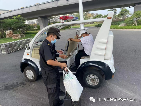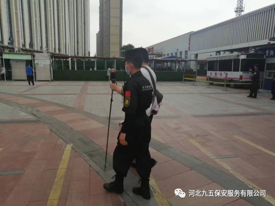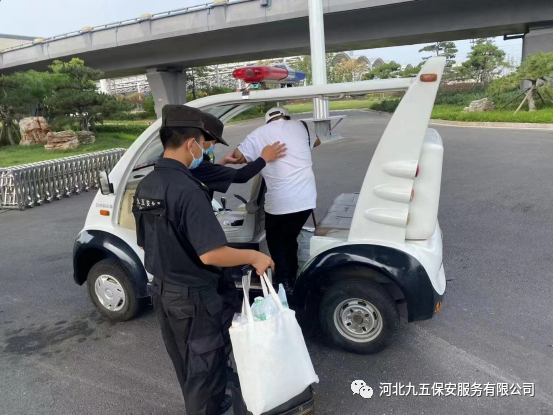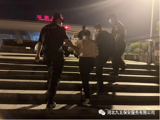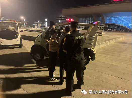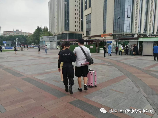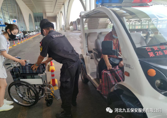 河北九五保安帮助行动不便者提行李,并小心翼翼的搀扶上车。
