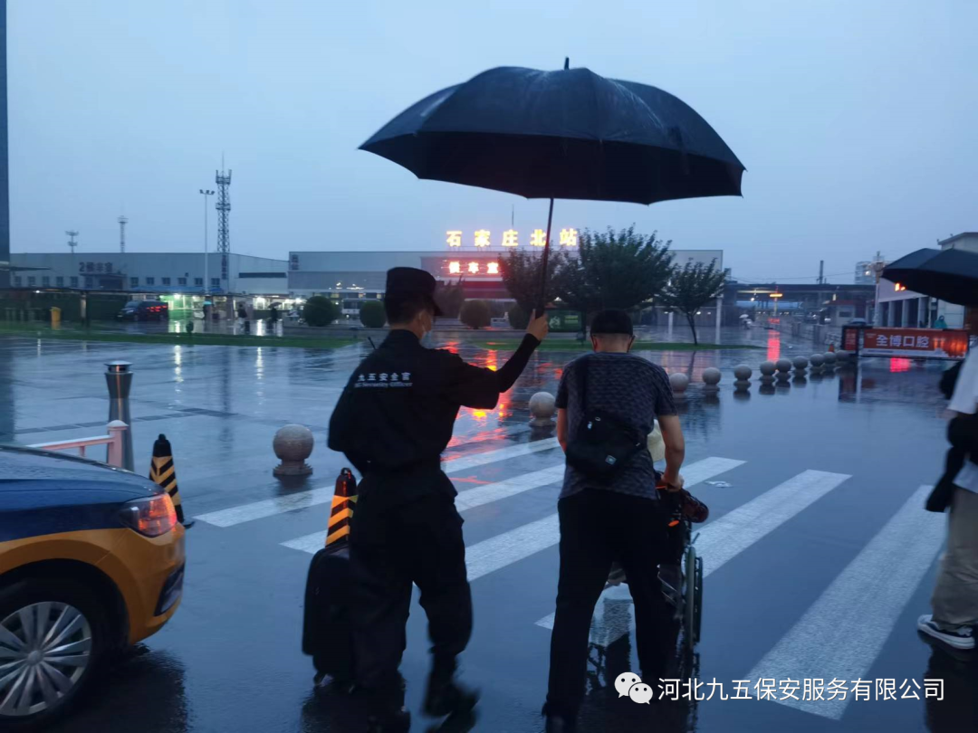 下雨天为没有带伞的旅客撑伞并帮忙拿行李,护送进站。