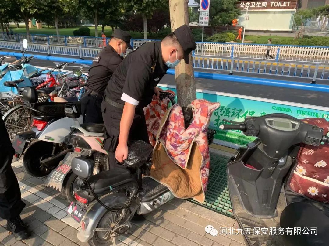 九五保安整理非机动车乱停乱放,营造文明有序市容环境