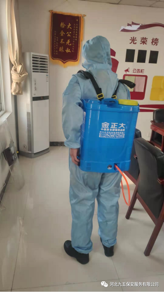 在领导的高度重视和指挥下,九五保安公司深刻认识到新型冠状病毒感染肺炎疫情的严重性和科学防护的紧迫性。迅速成立党员抗疫先锋队,紧急准备消杀防护物品,保证各岗位有足够的消毒工具和消毒液,每天对工作岗区域进行消杀,遏制病毒的传播。