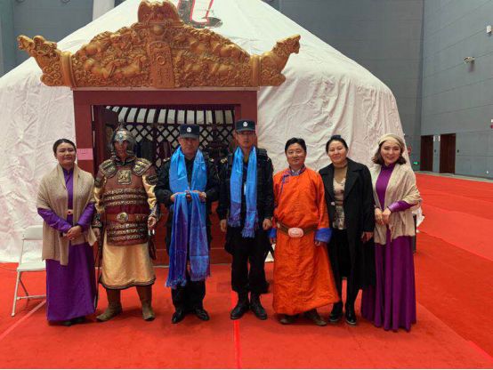 在本届正博会,九五安保人员帮助多名参展商,并得到了主办方和参展商的一致认可,图为来自蒙古国的特邀嘉宾,为答谢九五特勤的帮助,用蒙古最高礼仪表示感谢。